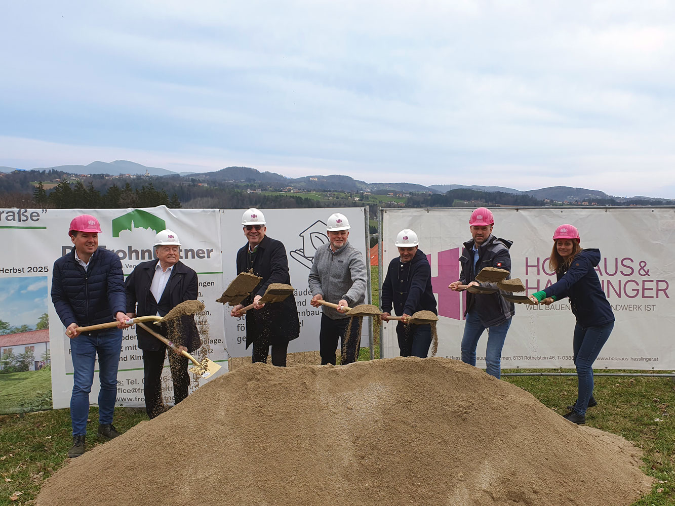 Der symbolische Spatenstich gemeinsam mit den Bauherren Die Frohnleitner markiert den offiziellen Baubeginn für den ersten Bauabschnitt an der Lichteneggstraße, St. Bartholomä. Hier entstehen drei Häuser mit insgesamt 12 Wohnungen – und damit ein neuer Wohntraum für die Region.