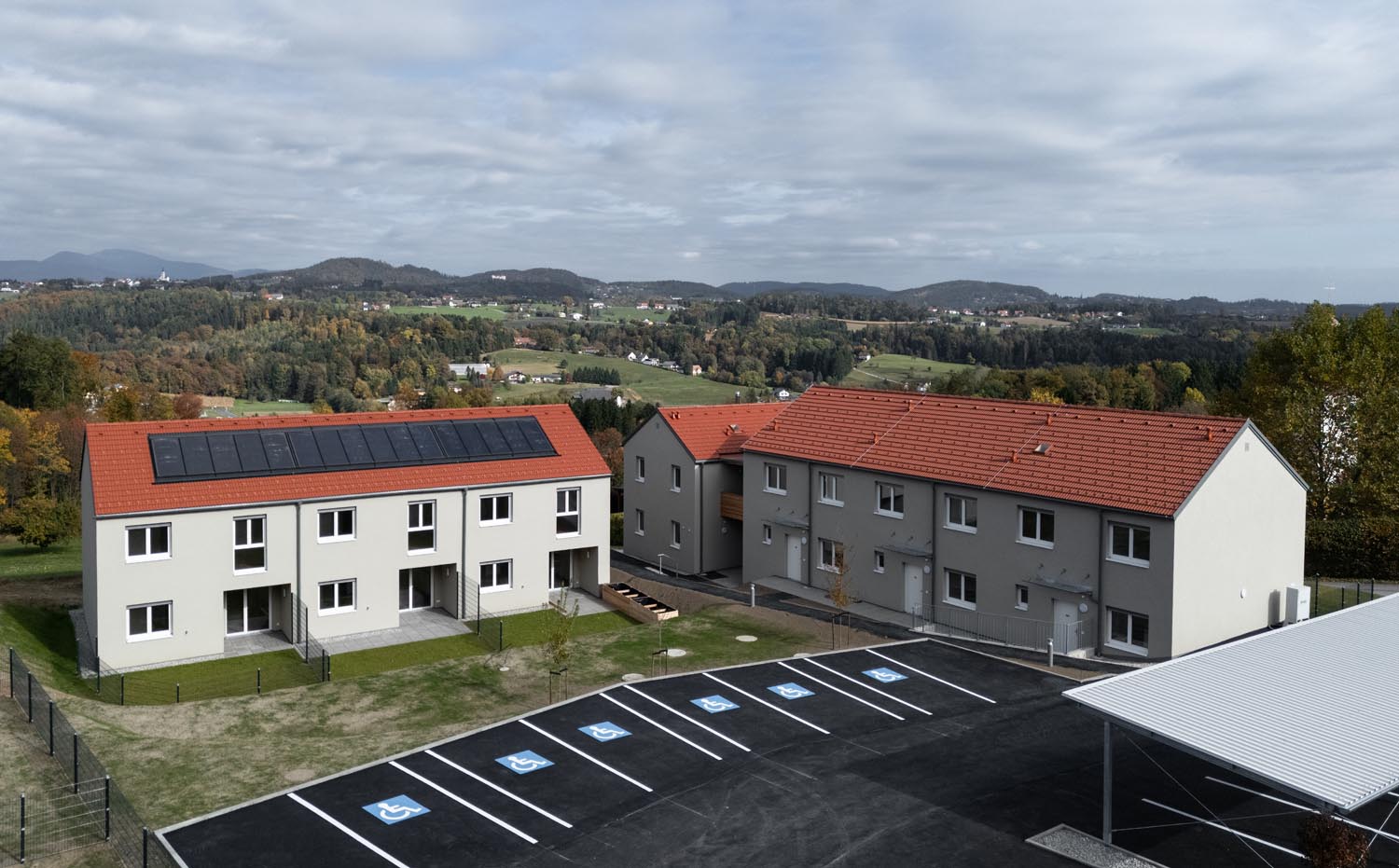 Die Siedlung liegt idyllisch am Waldrand mit Blick auf die Berge, dennoch in kurzer Reichweite zu Nahversorger, Volksschule, Arztpraxis und Freizeitangeboten – perfekt für Familien, alle Generationen und Naturliebhaber.